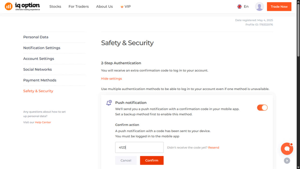 تُقدِّم IQ Option خيارات عديدة للمُصادَقة بما يُسهِّل الوصول إلى الحساب: