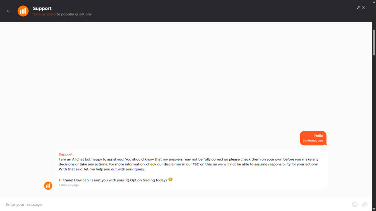 تُتيح IQ Option عدَّة قنوات دعم لتلبية احتياجات المستخدمين، ألا وهي: