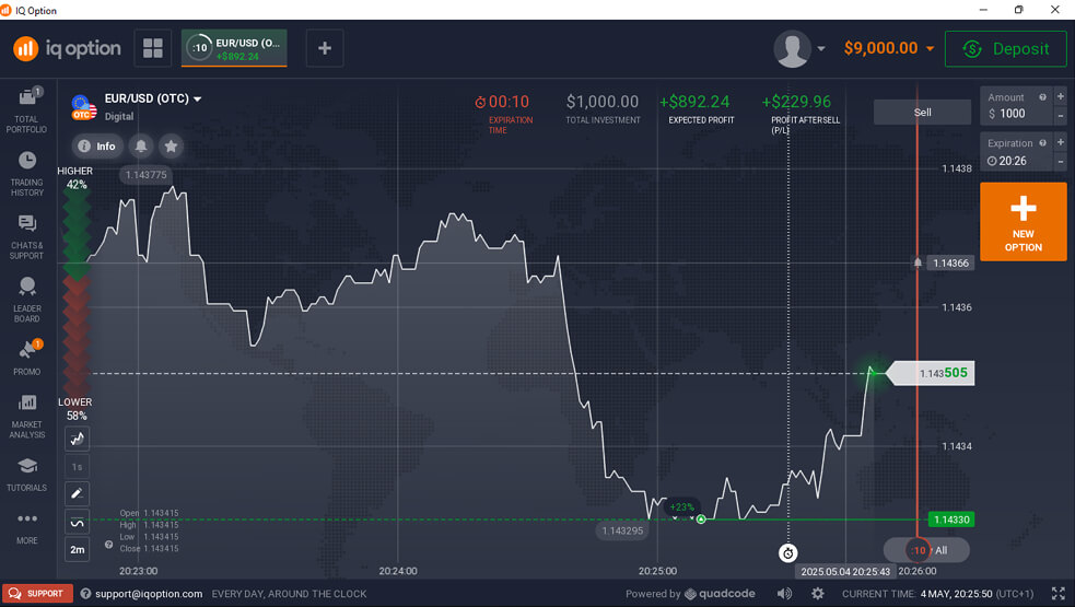 ومن أبرز مزايا IQ Option إمكانية فتح حساب تجريبي مجاني برصيد افتراضي للتدريب يبلغ 10,000 دولار أمريكي. بما يُتيح لك التدرُّب على التداوُل دون المجازفة بأموالك الحقيقية – وهي ميزة ذات أهمية استثنائية للمبتدئين.